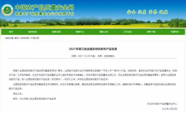 近日農業農村部農產品質量安全中心對2021年第三批全國名特優新農產品名錄進行公布五原縣1個農產品入選榮獲“全國名特優新農產品”稱號。