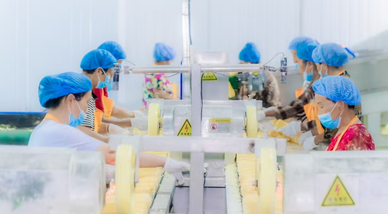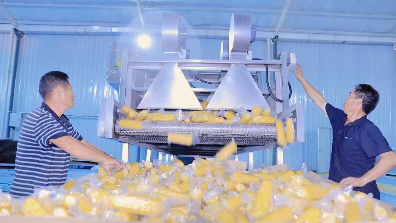 離玉米種植基地不足6、7公里的加工車間里,同樣一片忙碌。剛運到的鮮食玉米被立即送進分揀區,工人們快速剔除破損、過小的玉米,剩下優質玉米經清洗、切段、殺菌等環節后,真空打包、快速處理。從玉米采摘到完成包裝,整個過程嚴格控制在60分鐘內,這就是“一小時鎖鮮”的核心環節。