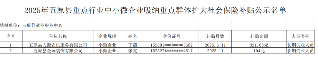 公示日期:2025年11月21日-11月27日,公示期為5個(gè)工作日,如對(duì)補(bǔ)貼發(fā)放有問題反映,請(qǐng)與五原縣就業(yè)服務(wù)中心聯(lián)系。