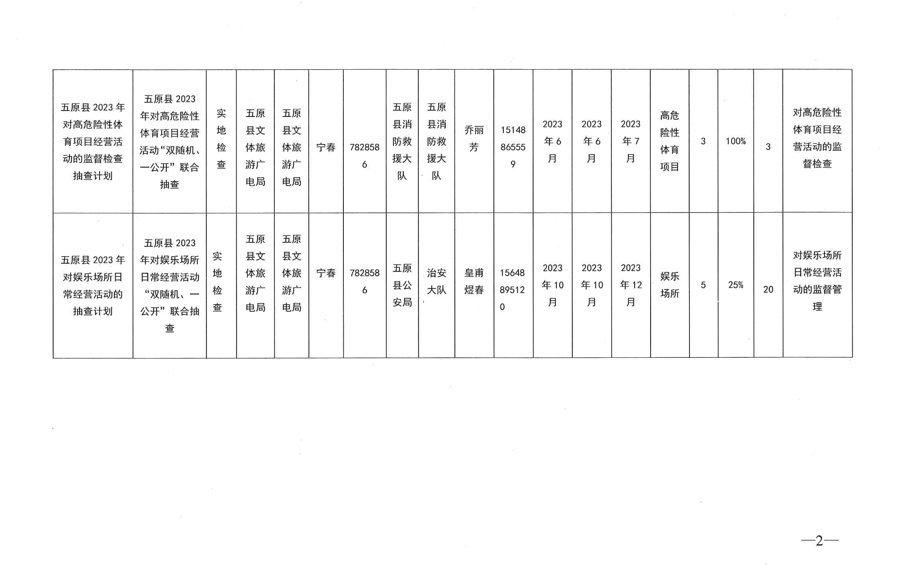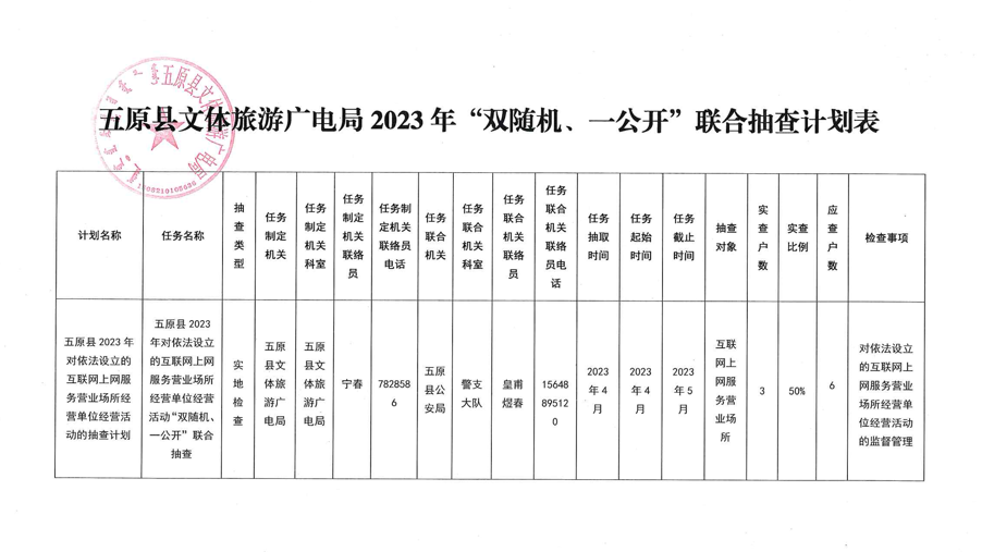 五原縣文體旅游廣電局2023年“雙隨機、一公開”聯合抽查計劃表